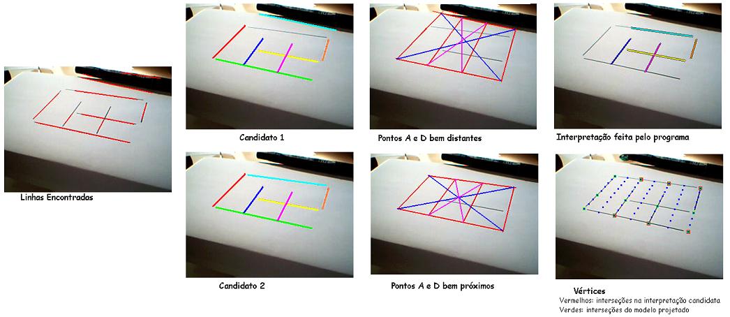 Por último tentamos casar cada linha encontrada com cada linha do modelo desde que não haja nenhuma violação da geometria do modelo (linhas paralelas continuam paralelas, segmentos que não se cruzam continuam não se cruzando, etc).