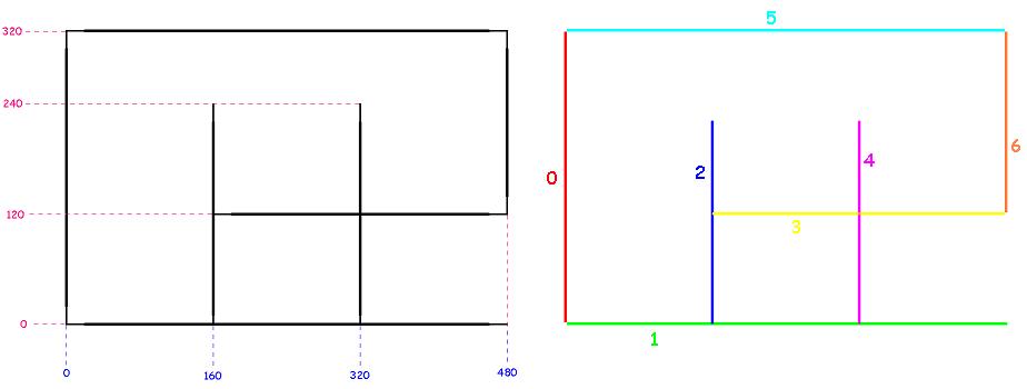 O modelo escolhido é o mostrado na figura 1. Ele é composto de 3 linhas horizontais e 4 linhas verticas. Esta configuraçao nos dá 12 pontos de interseção. O modelo não é simetrico, assim não há ambiguidade nas hora de determinar sua posição. Todas as linhas são suficientemente grandes para serem capturadas.