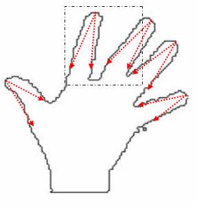 consideração feições que sempre são detectadas na silhueta da mão. Os