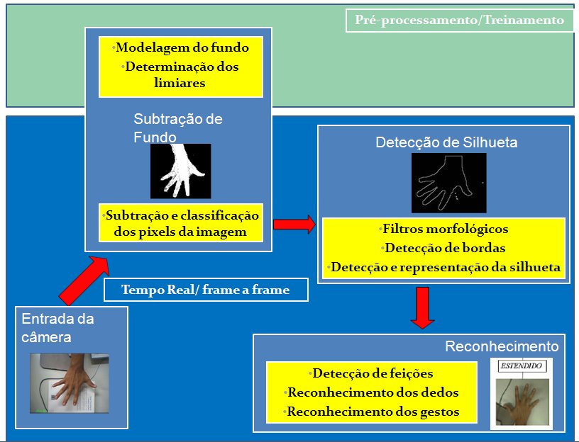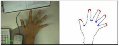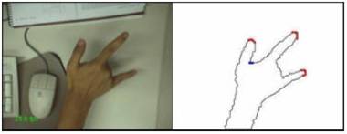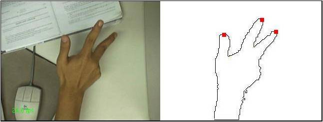 A idéia geral consiste em detectar algumas feições da silhueta da mão