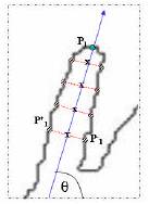 - Trace a melhor reta envolvendo os pontos médio e o ponto de referência P para achar a direção do dedo.