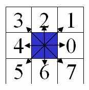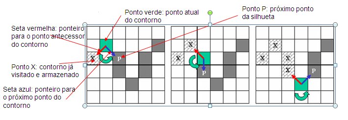 - Após isso, utilizando a representação da Lista de Códigos, é escolhido o próximo ponto do contorno para ser armazenado.